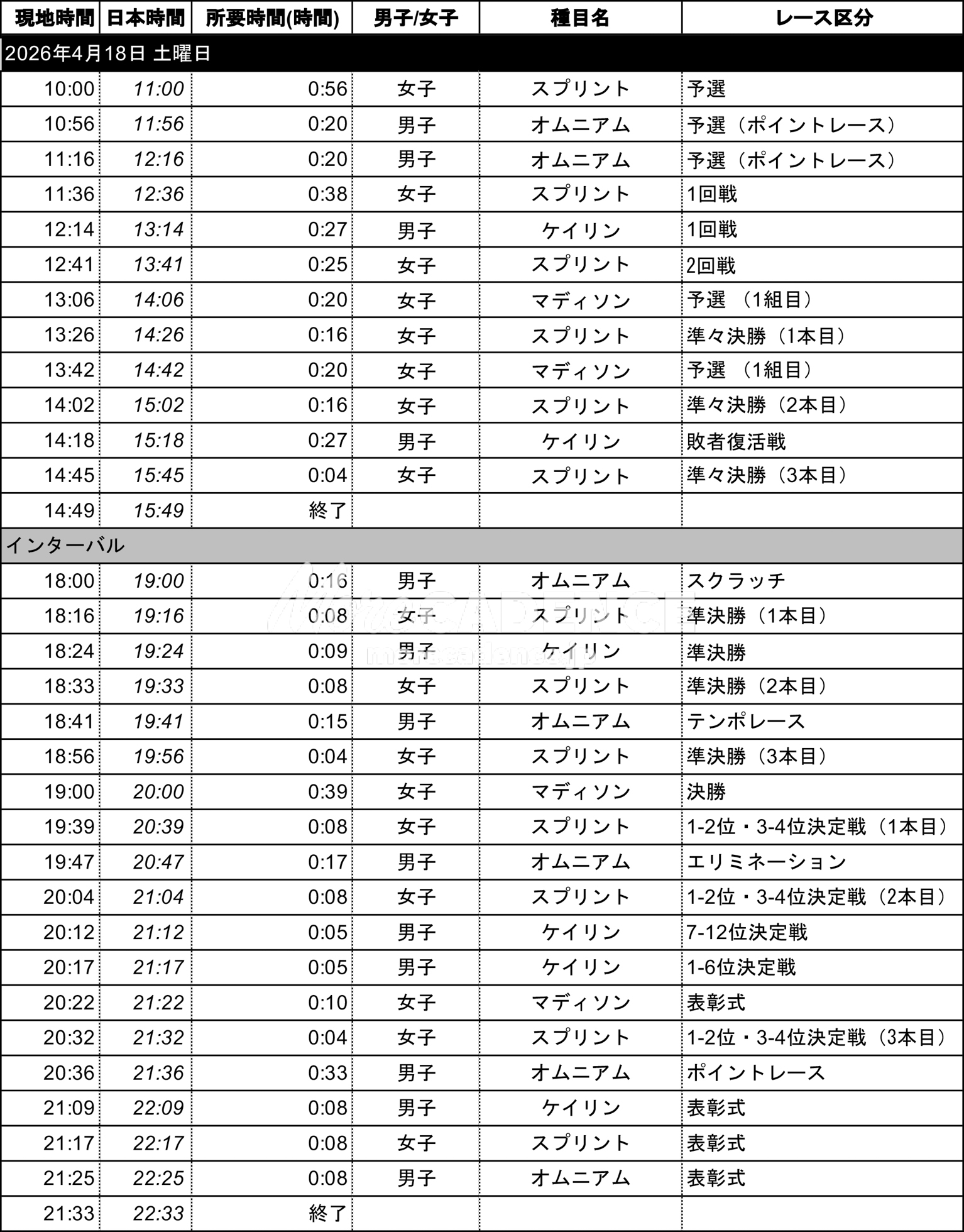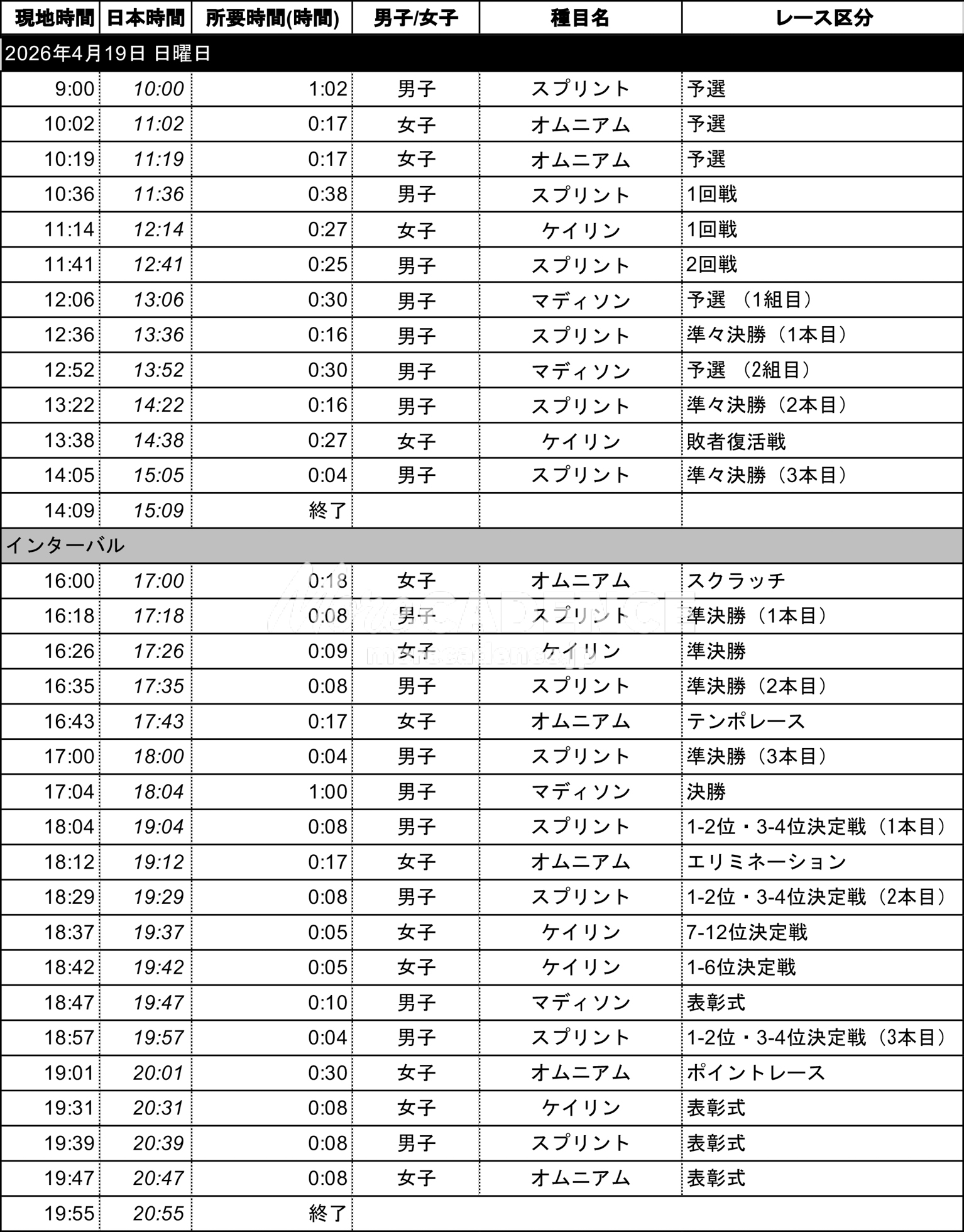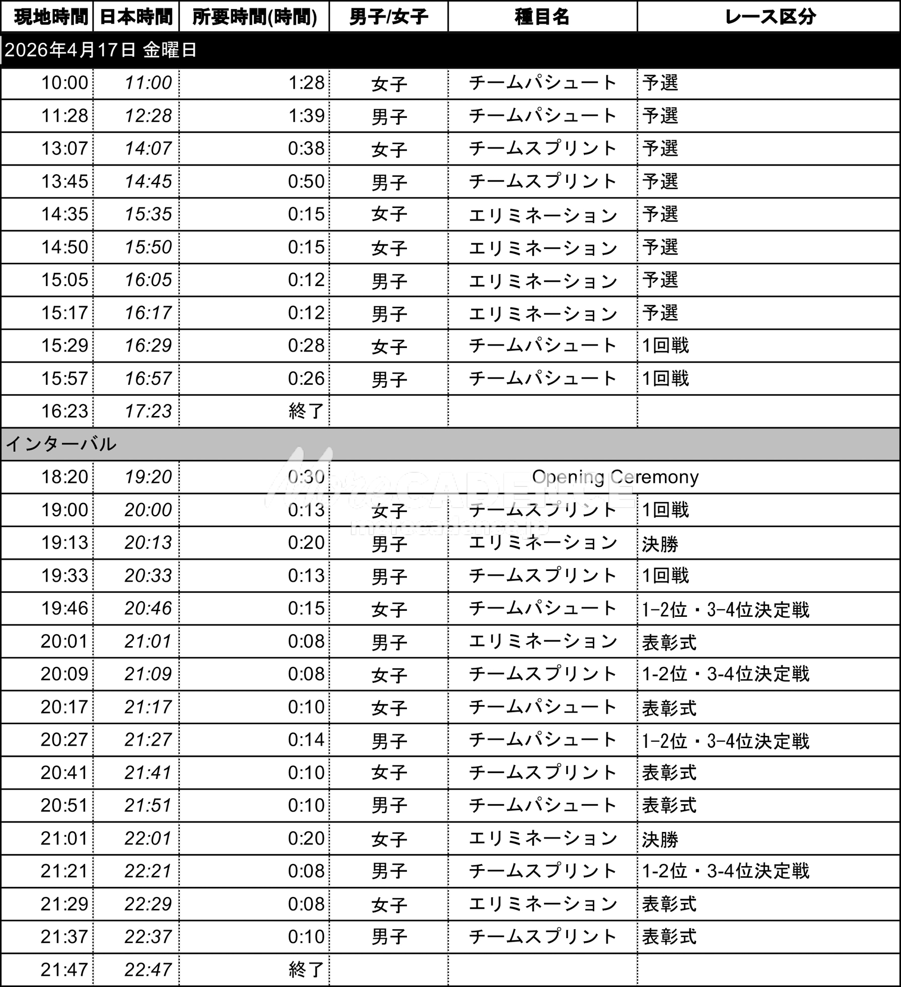 以下、日本時間入りの大会スケジュールを掲載する。
